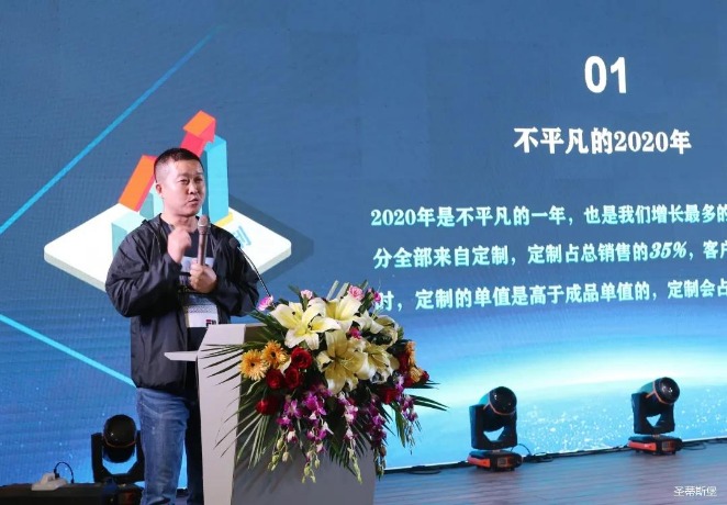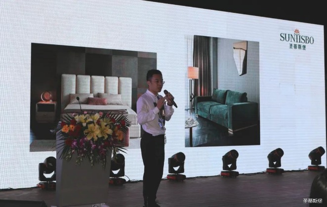 华灯璀璨的开场仪式,点燃了现场如火如荼的气氛。Z6·尊龙时凯集团营销总经理陈玉伟先生对晚会进行了主题发言,他对2020年的营销工作进行了总结,并着重从营销工作部署、重点项目开展、产品整合、拎包帮扶、渠道运营和移动+定制整装优势等方面对2021年的营销工作做了全面的统筹规划。同时,他还讲解了“美国梦凯莎床垫”新品的产品工艺、市场优势、产品定位,使经销商对我们的新产品拥有更深入的认识和了解。